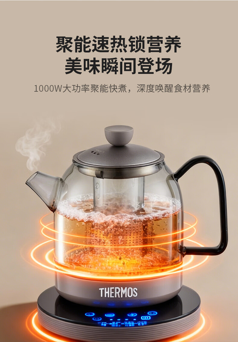 膳魔师 钛茗茶养生壶曜石黑 800W EHA-1605E