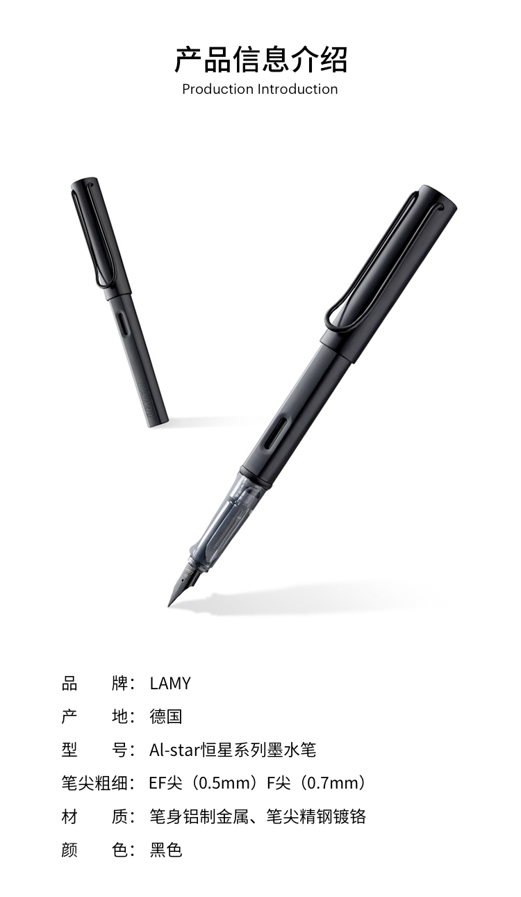 商品名称:凌美(LAMY)钢笔 AL-star恒星限量炭黑