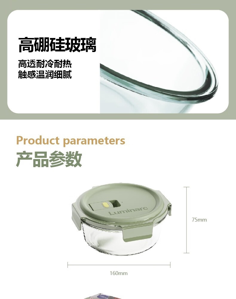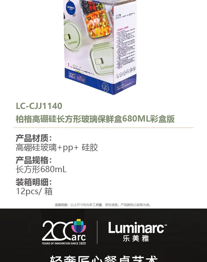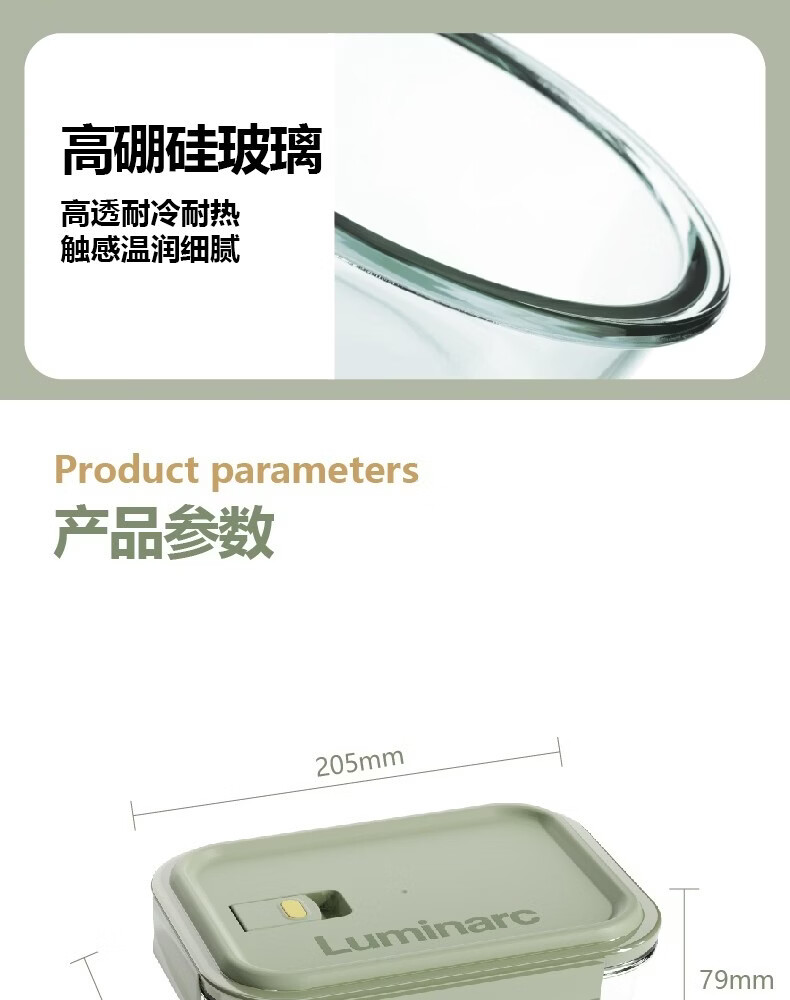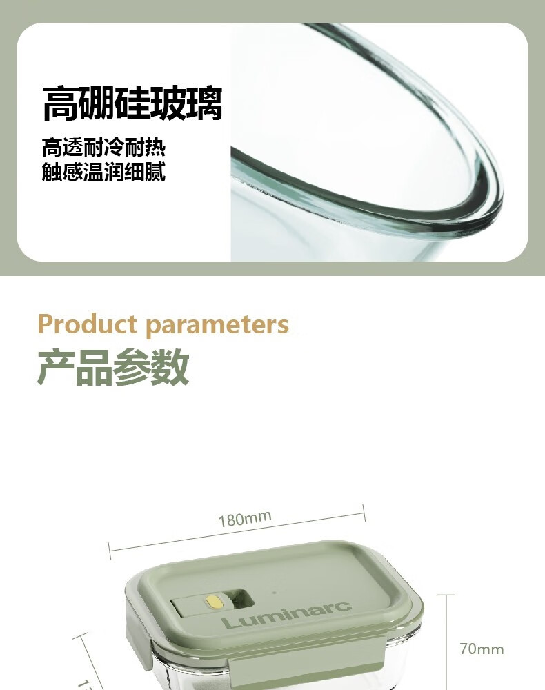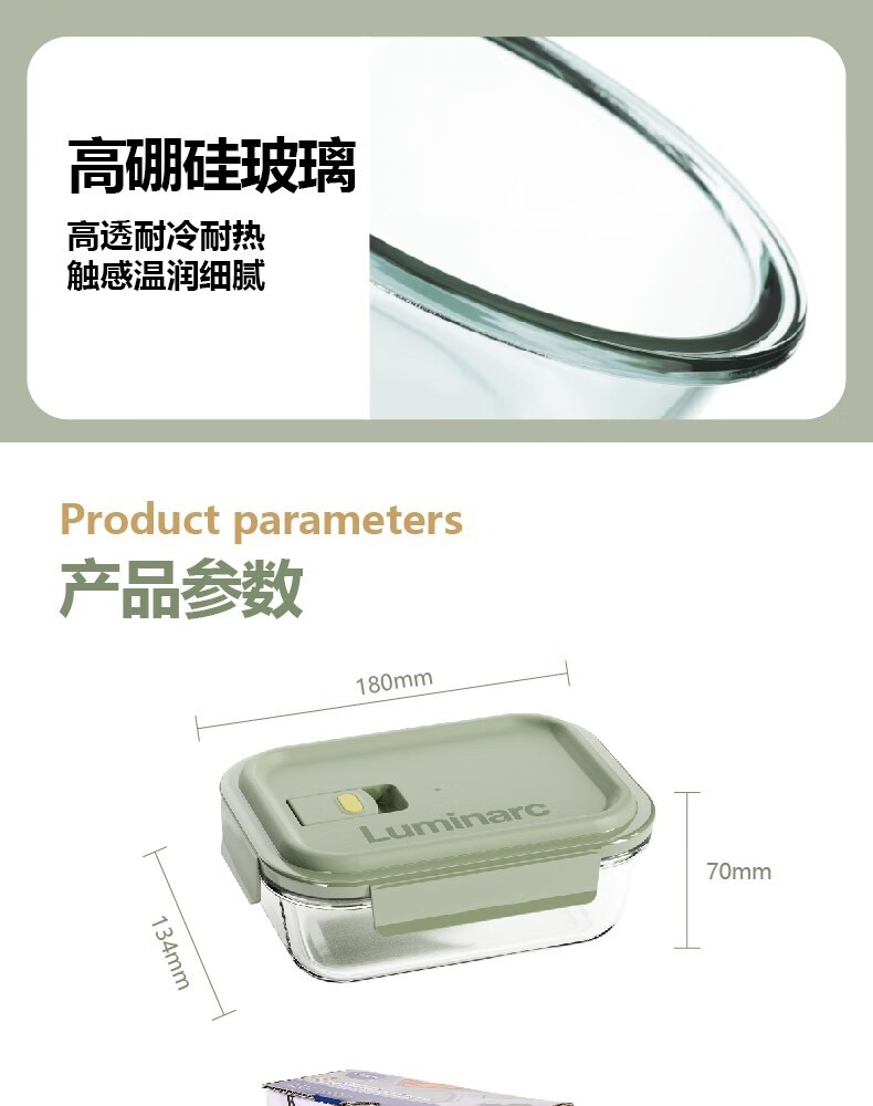 商品名称:乐美雅 弓箭柏格高硼硅长方形玻璃保鲜盒彩盒装 680ml LC-CJJ1140