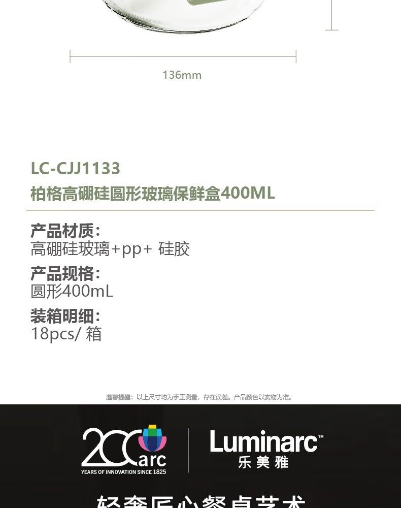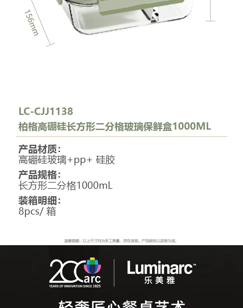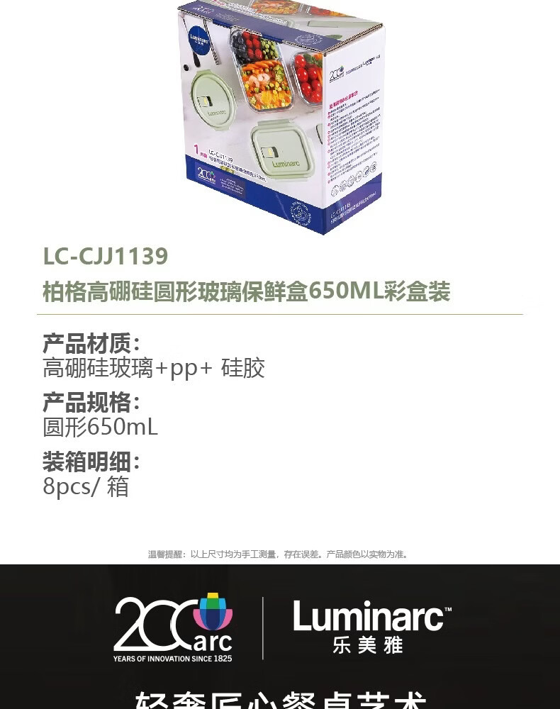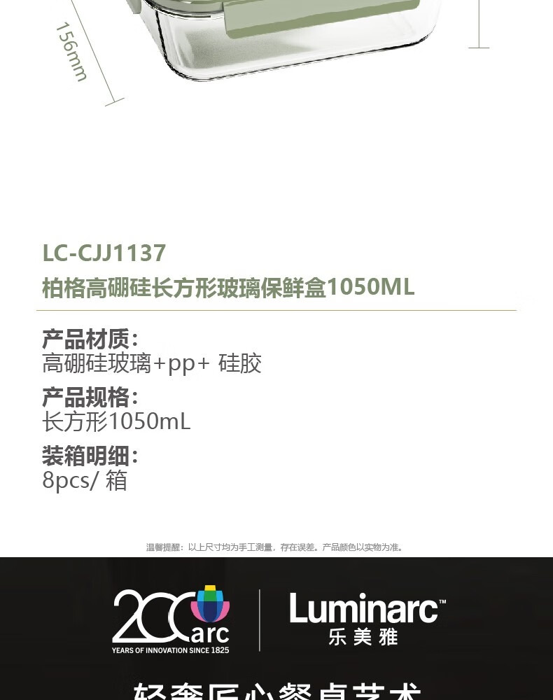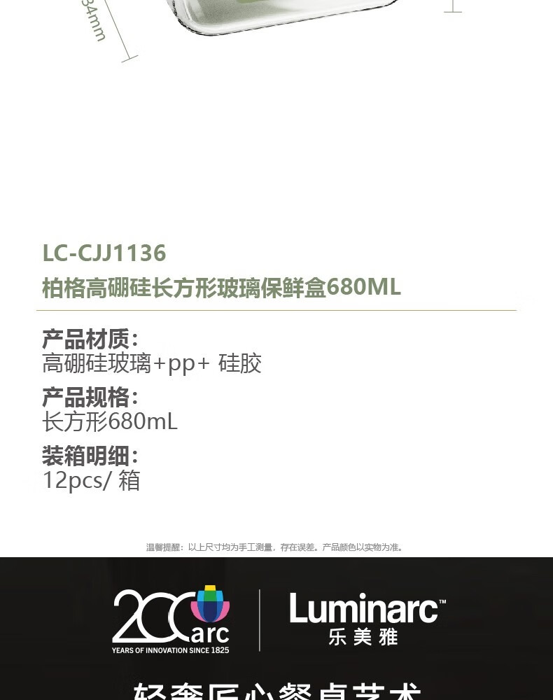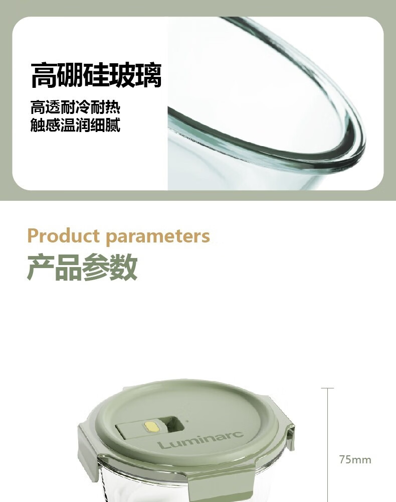 商品名称:乐美雅 弓箭柏格高硼硅长方形玻璃保鲜盒彩盒装 680ml LC-CJJ1140