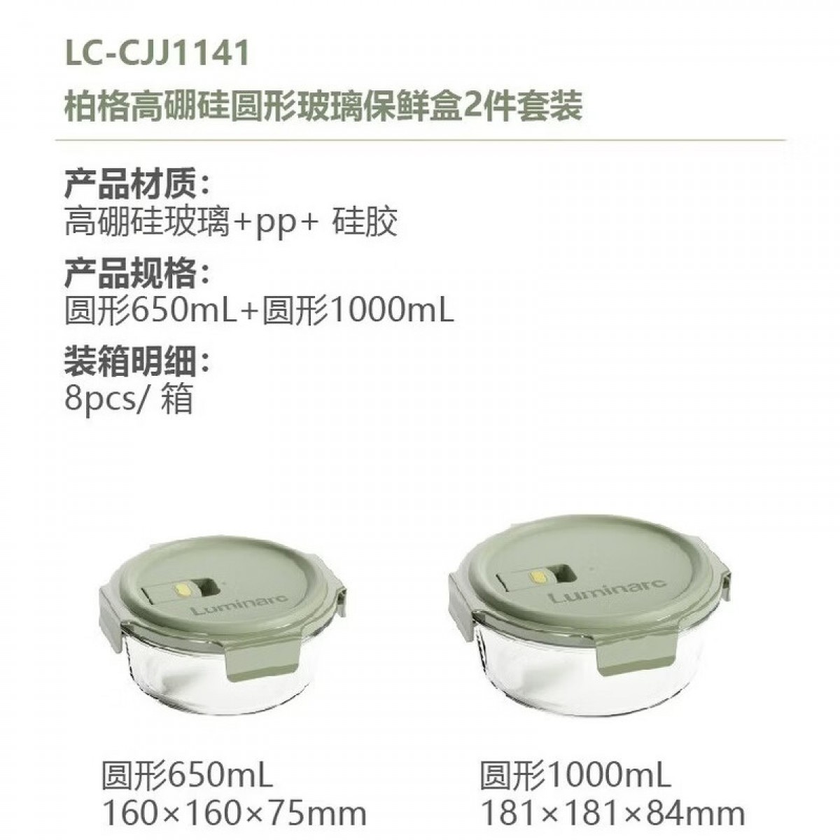 商品名称:乐美雅 弓箭柏格高硼硅圆形玻璃保鲜盒2件套装 中圆650ml 大圆1000ml LC-CJJ1141