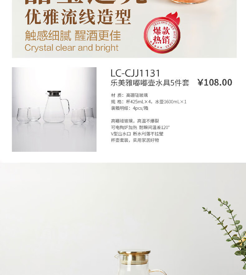 商品名称:乐美雅 弓箭乐美雅嘟嘟壶水具5件套 1600mL LC-CJJ1131