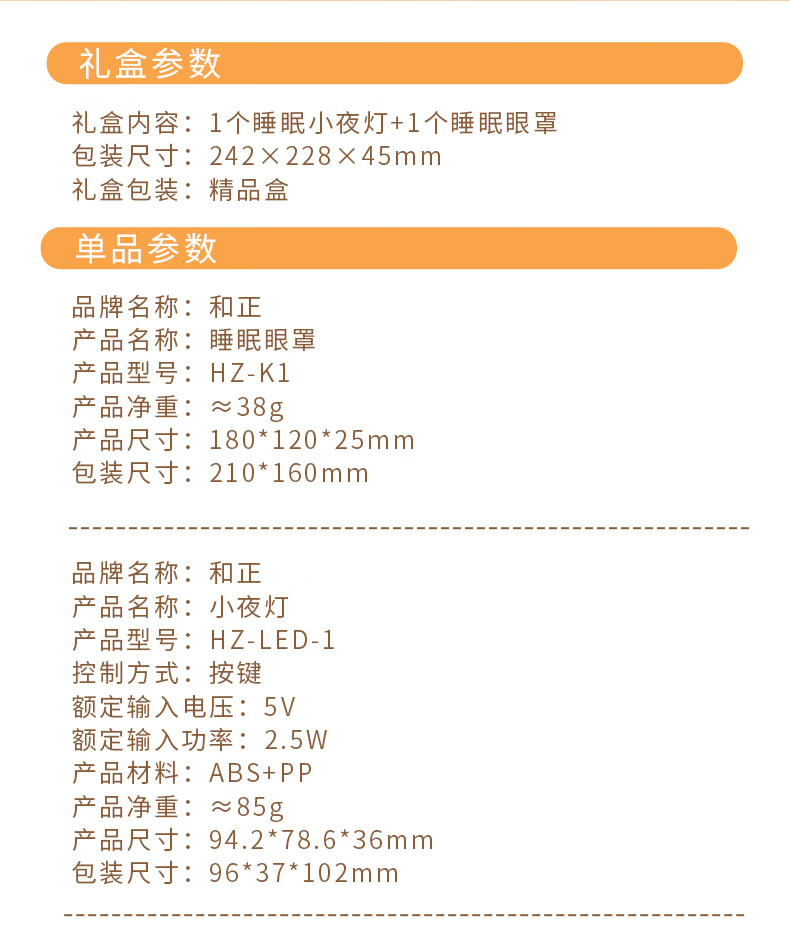 包装清单 :1个睡眠小夜灯+1个睡眠眼罩