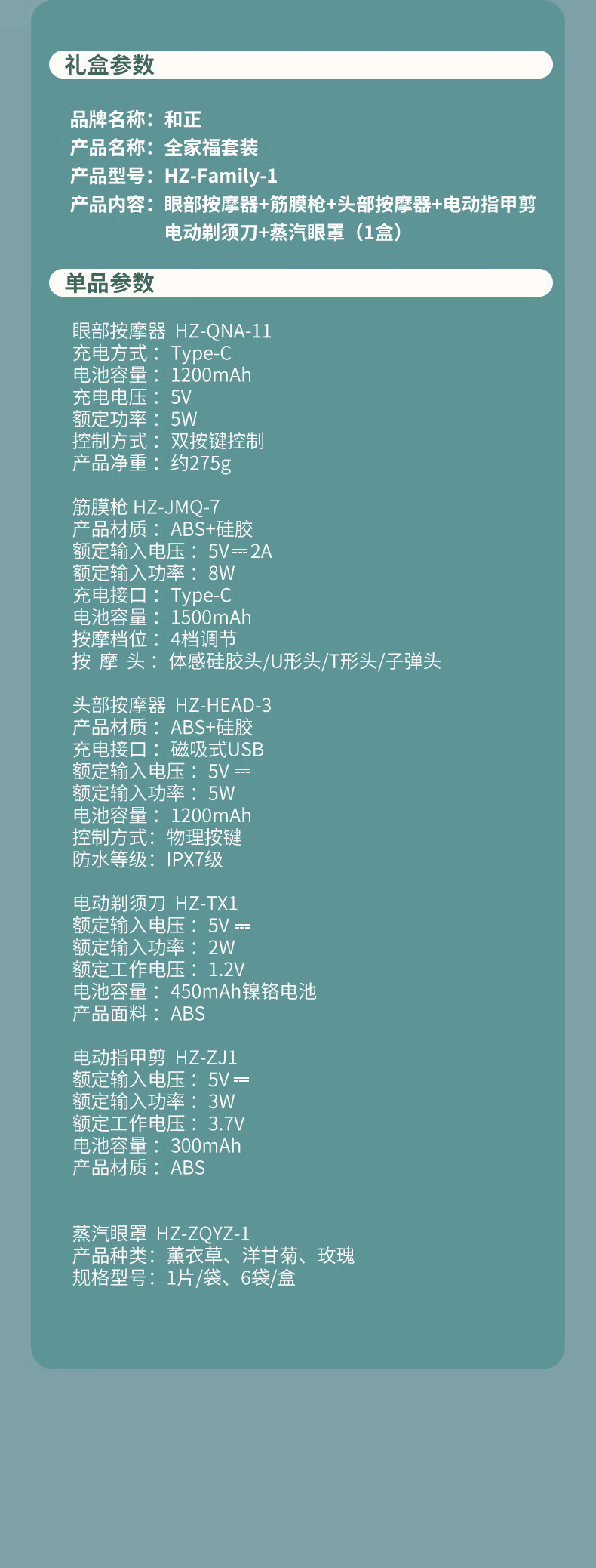 商品名称:和正 全家福套装 HZ-Family-1