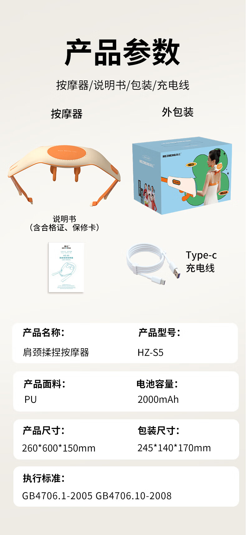 商品名称:和正 颈肩揉捏按摩器 9w HZ-S5