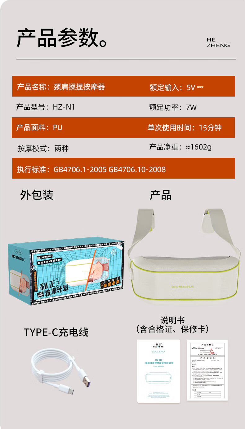 商品名称:和正 颈肩揉捏按摩器 7W HZ-N1