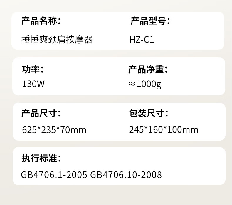 商品名称:和正 捶捶爽颈肩按摩器 130W HZ-C1