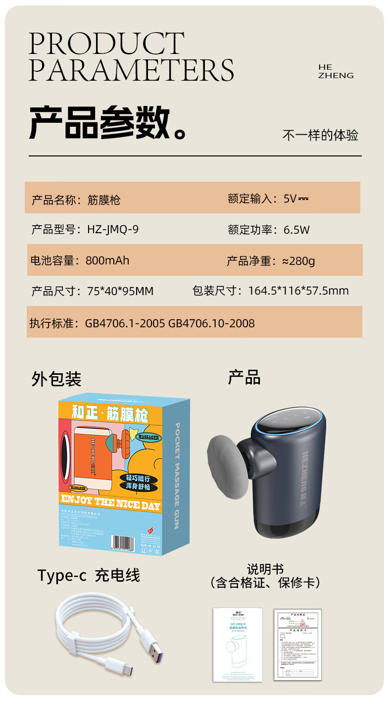 商品名称:和正 筋膜枪 6.5w HZ-JMQ-9