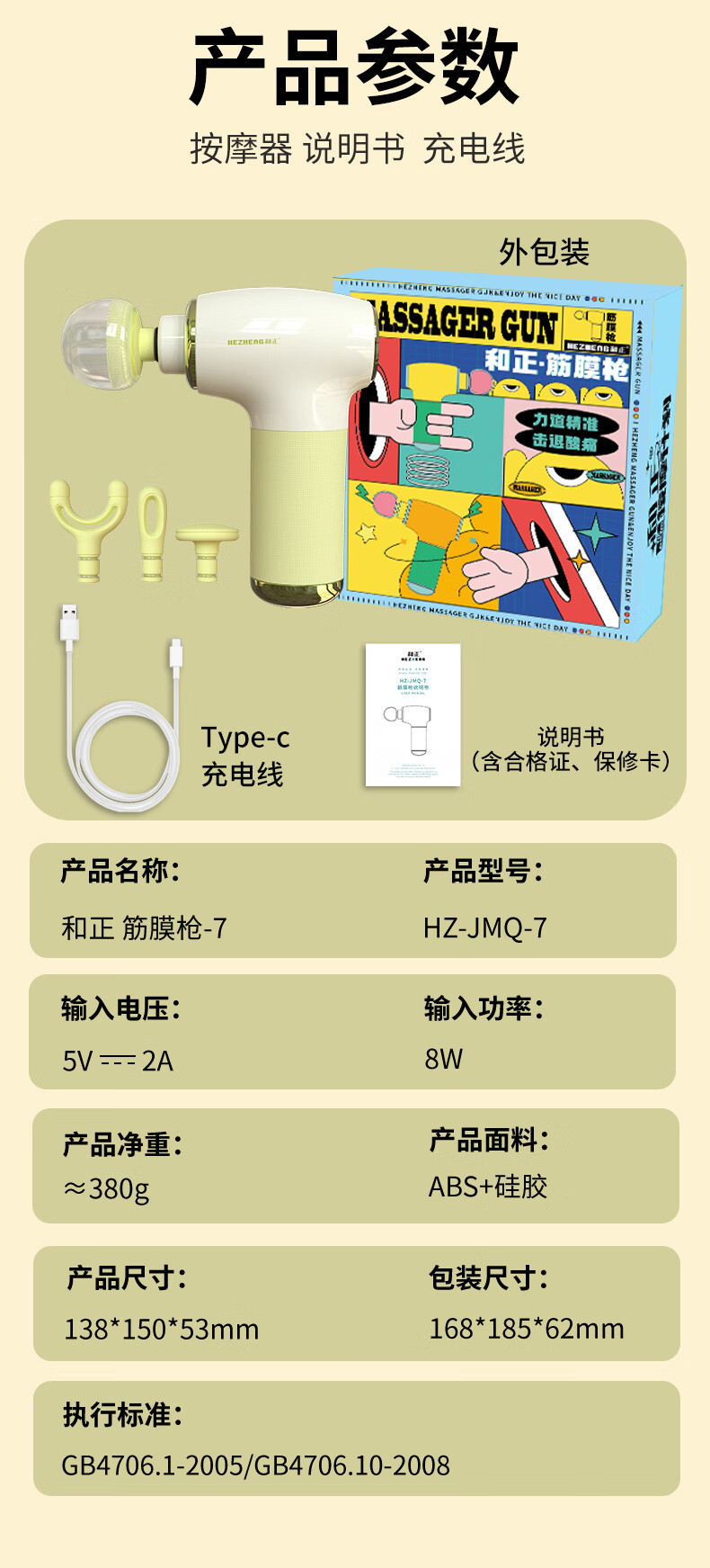商品名称:和正 筋膜枪 8W HZ-JMQ-7