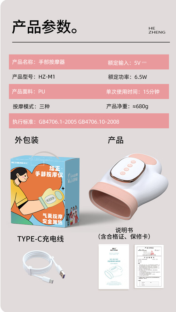 商品名称:和正 手部按摩器 HZ-M1(少女粉)/HZ-M2(薄荷绿)