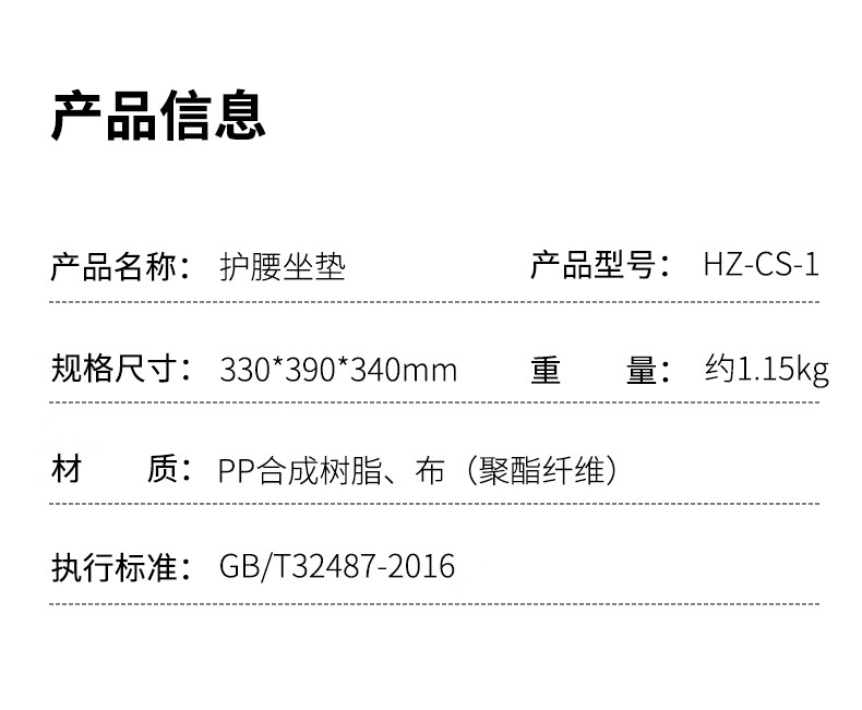 商品名称:和正 护腰折叠坐垫 HZ-CS-1