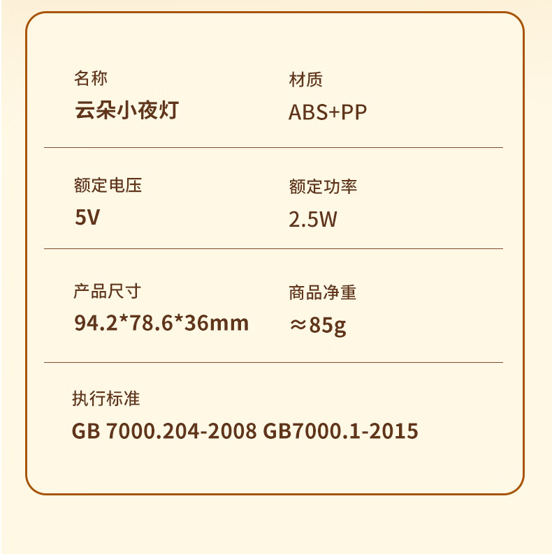 商品名称:和正 云朵小夜灯 2.5W HZ-LED-1