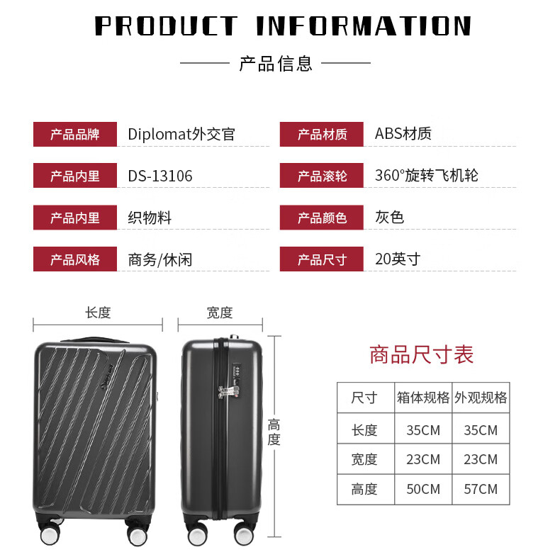 商品名称:外交官 拉杆箱 20英寸 DS-13106
