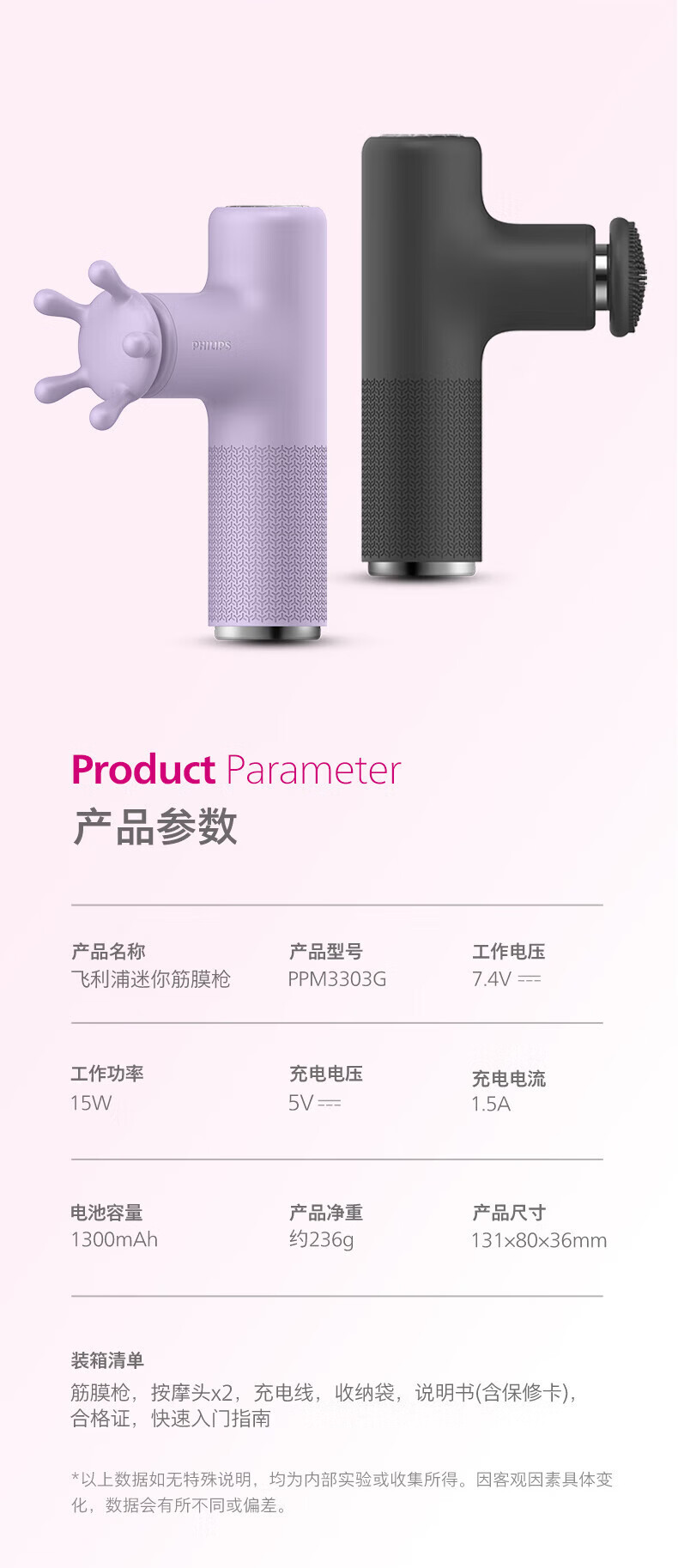 商品名称:飞利浦 mini筋膜枪 18W PPM3303G
