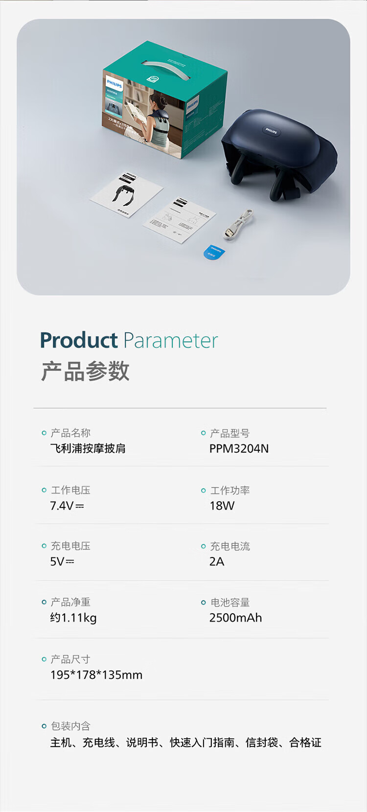 商品名称:飞利浦 颈椎按摩器 18w PPM3204N