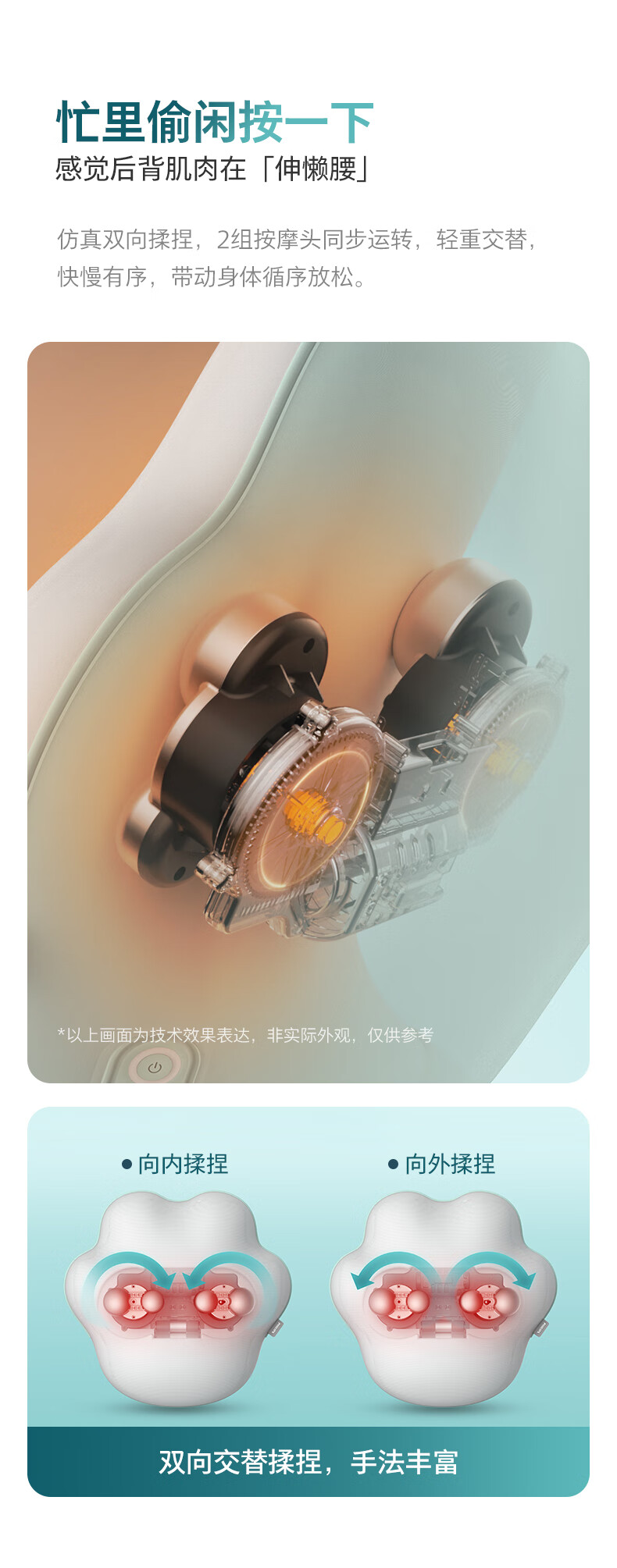 按摩手法 :仿人手揉捏