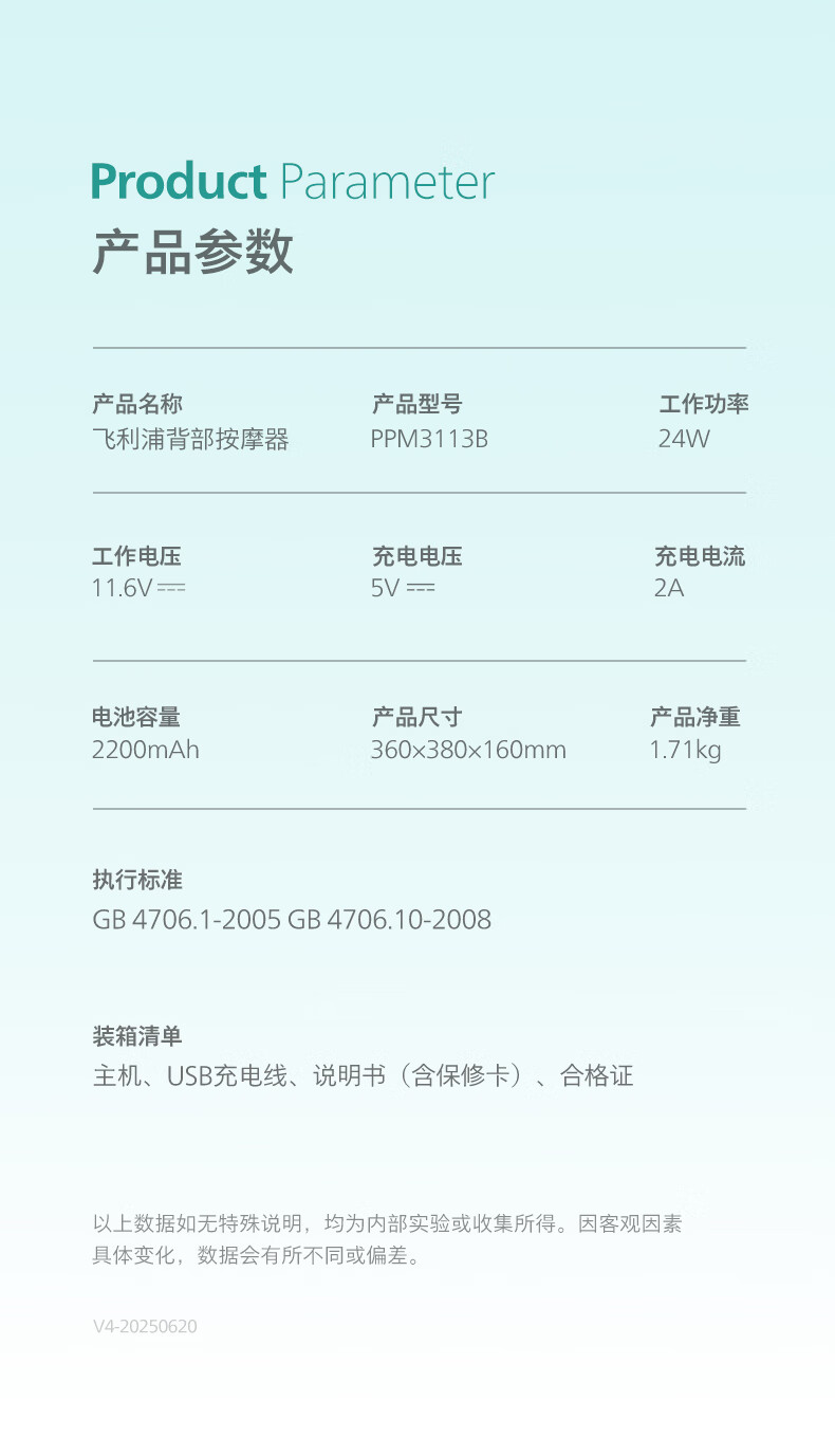商品名称:飞利浦 猫爪腰部按摩仪 24W PPM3113B