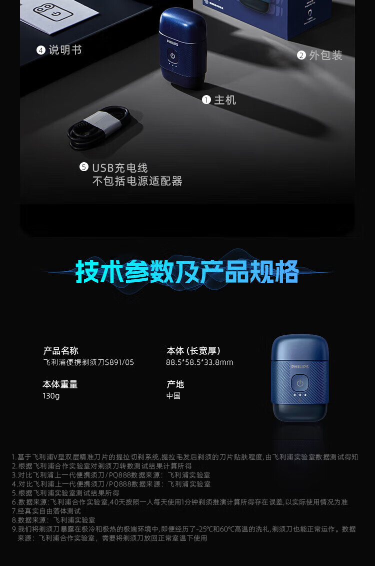 商品名称:飞利浦 便携电动剃须刀 YQ660/02