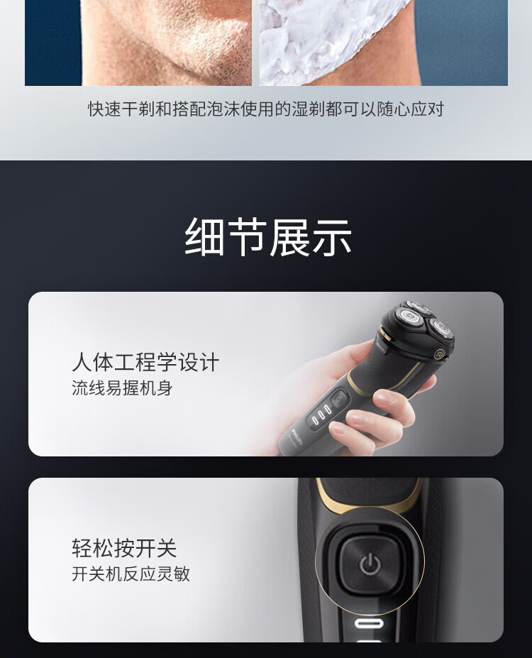 商品名称:飞利浦 Shaver 3000 Series电动剃须刀 S3216/12