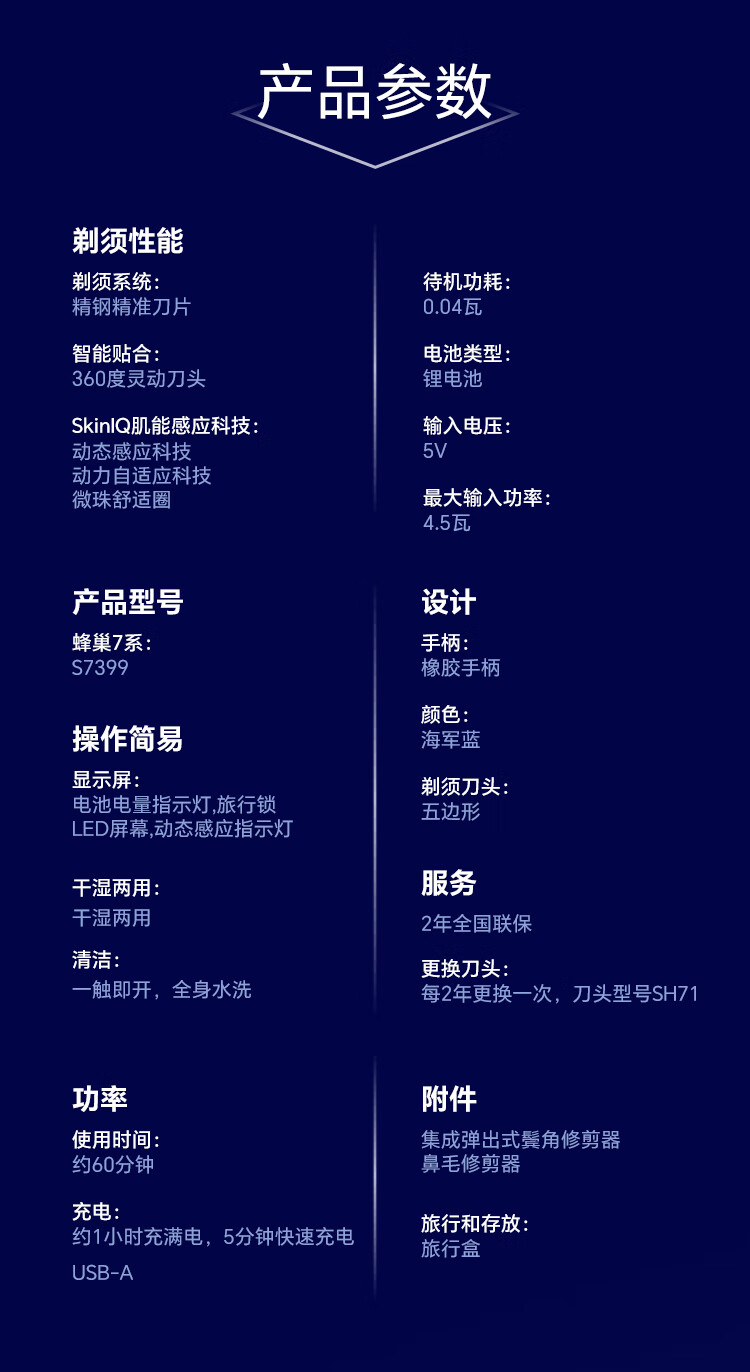 商品名称:飞利浦 电动剃须刀 S7399
