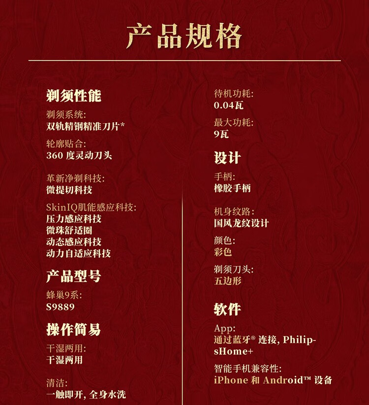 商品名称:飞利浦 电动剃须刀 S9889/88BP