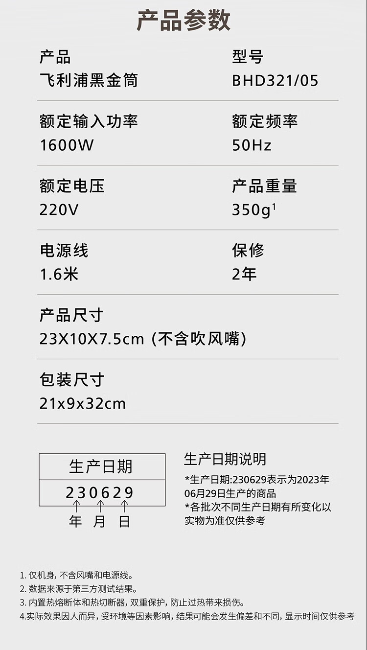 商品名称:飞利浦 电吹风 1600W BHD321
