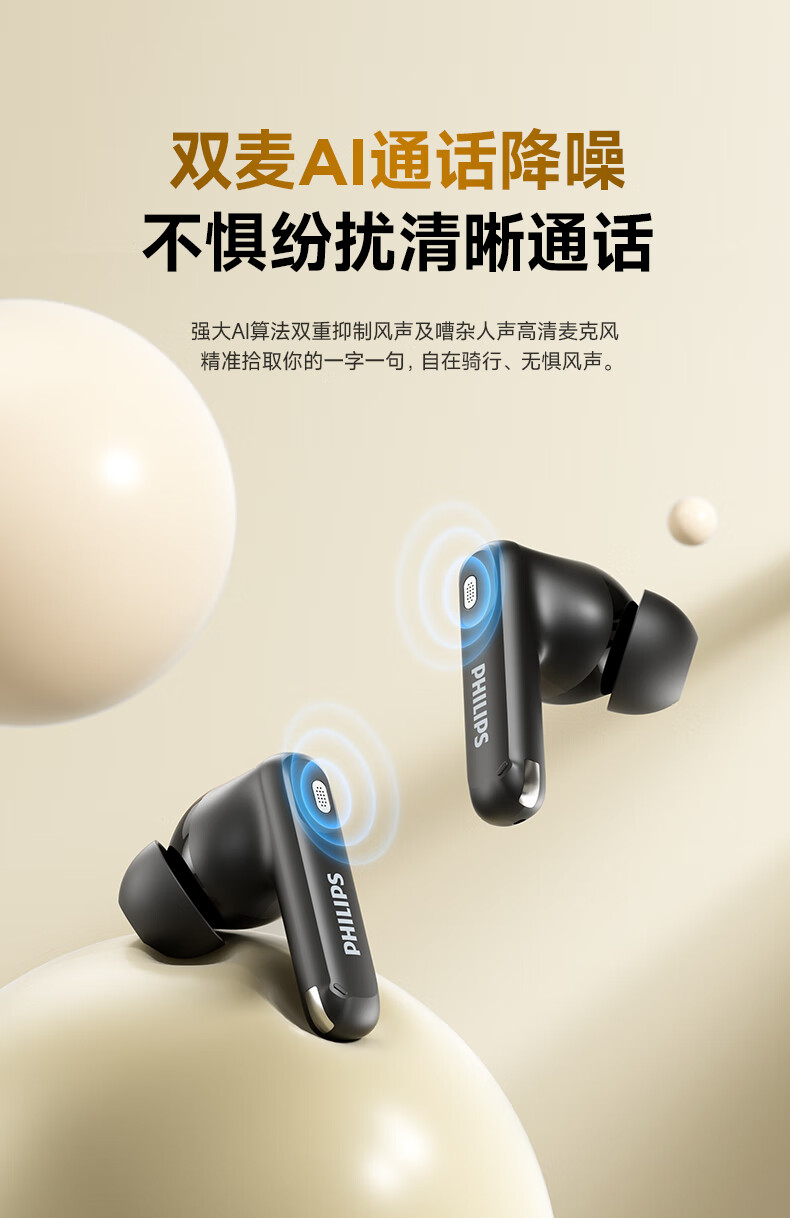 飞利浦 屏幕显示主动降噪蓝牙耳机 TAT3020