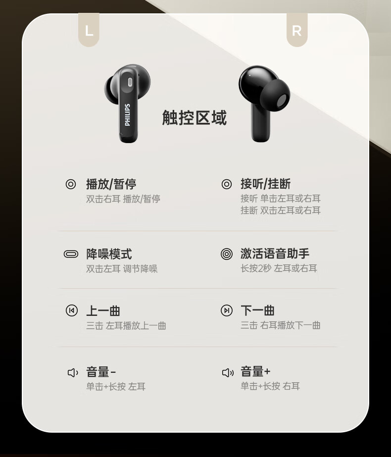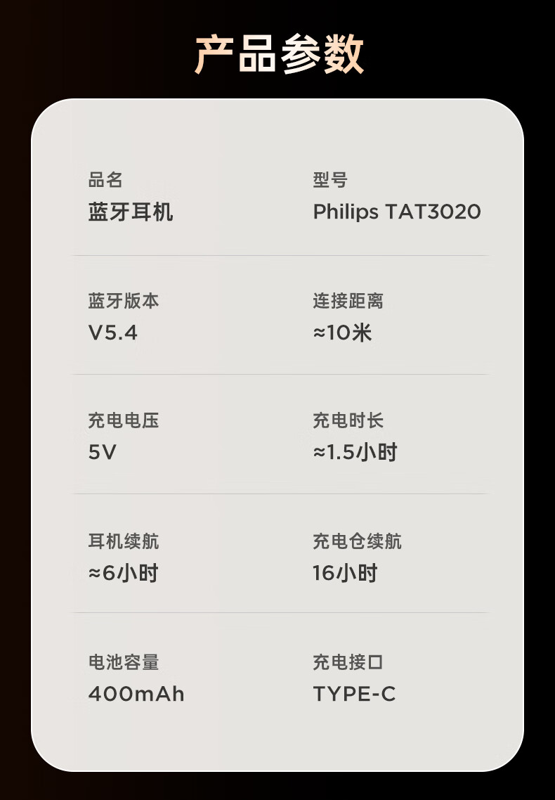 商品名称:飞利浦 屏幕显示主动降噪蓝牙耳机 TAT3020