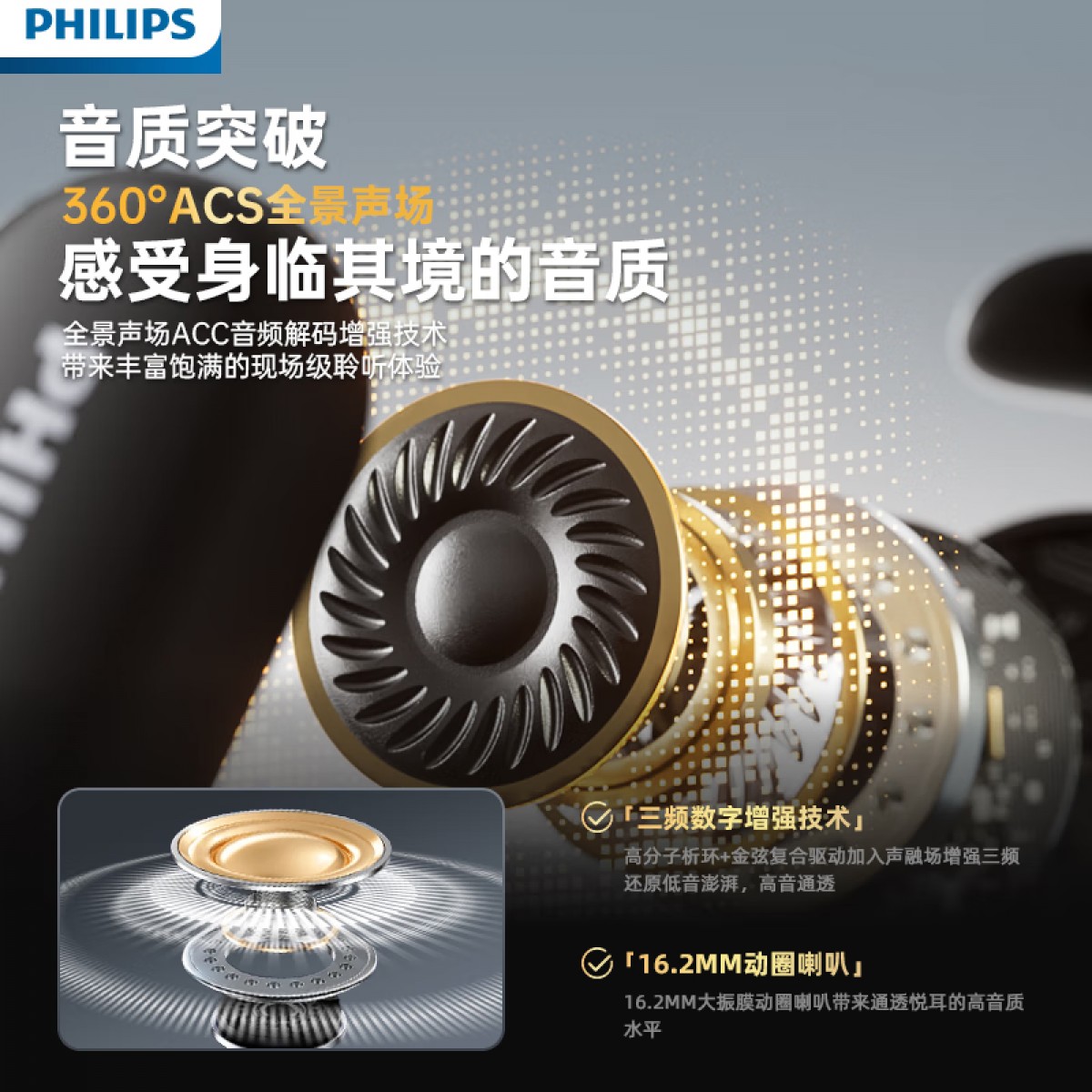 飞利浦 屏幕显示主动降噪蓝牙耳机 TAT3020