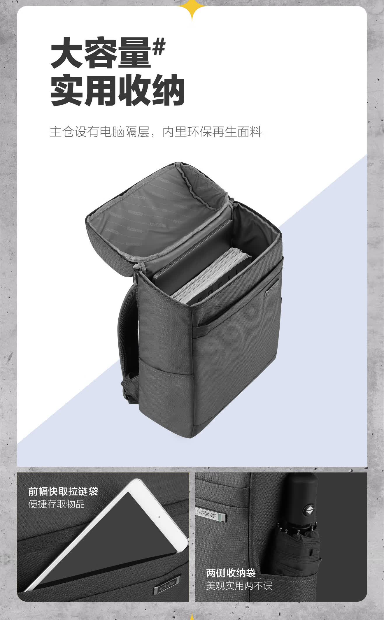 商品名称:美旅双肩包-深灰色 NE0*18001