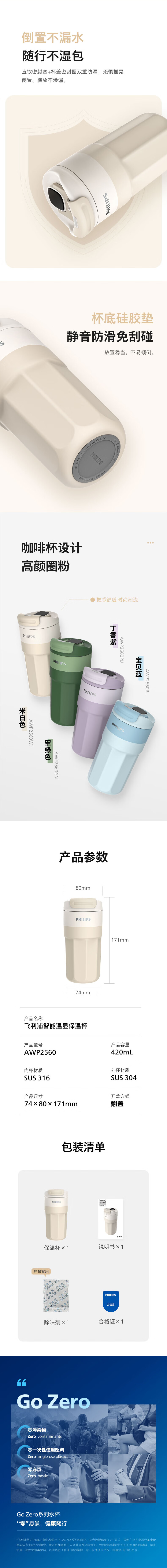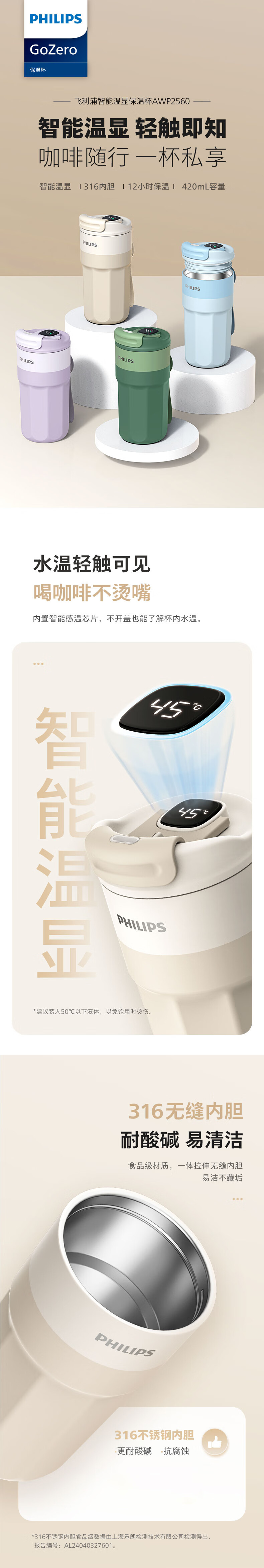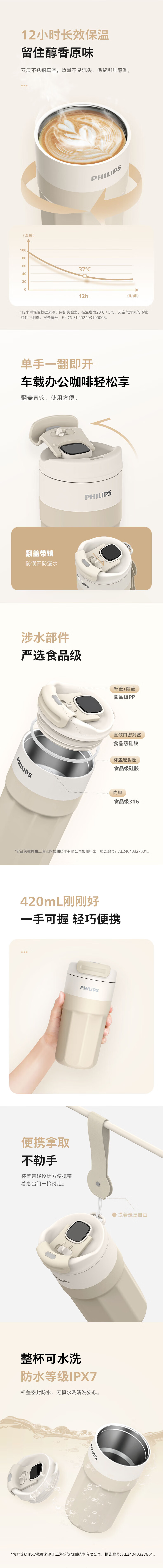 商品名称:飞利浦 温显咖啡保温杯 420ml AWP2560