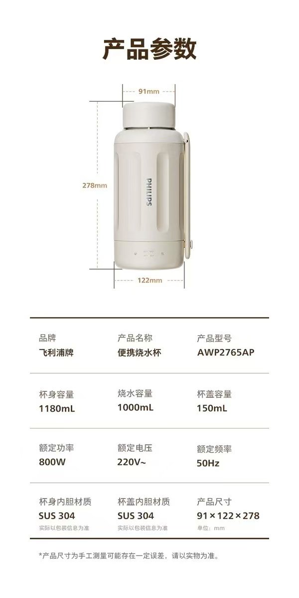商品名称:飞利浦 随行烧水杯 1000ml AWP2765