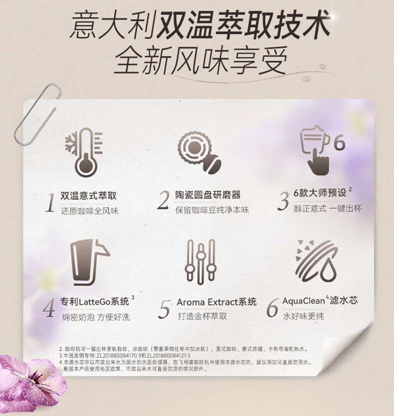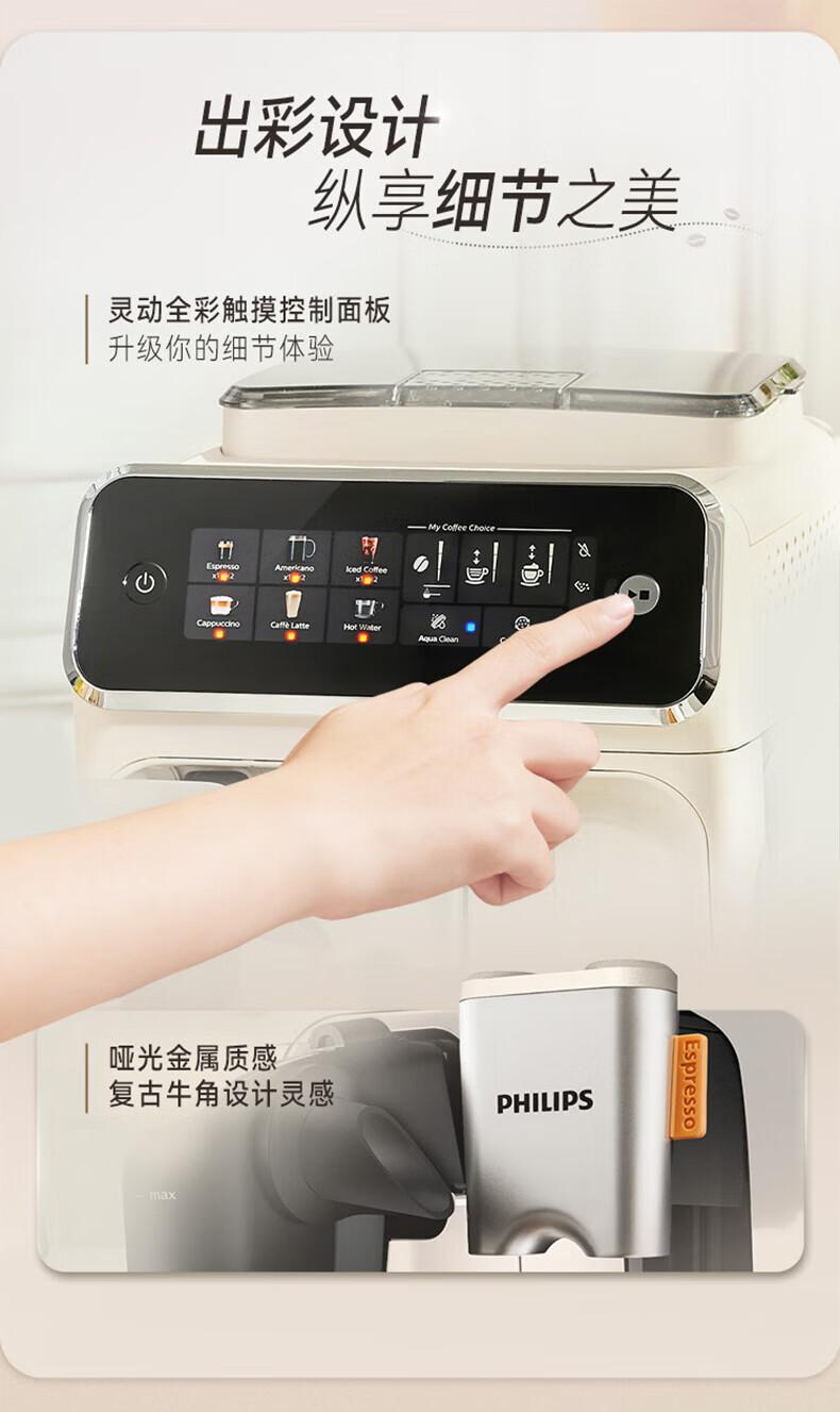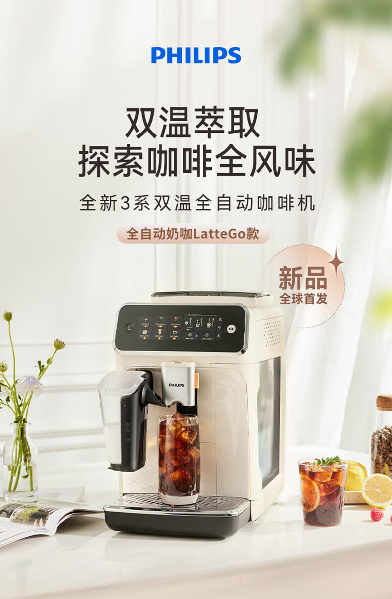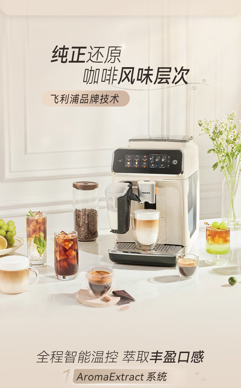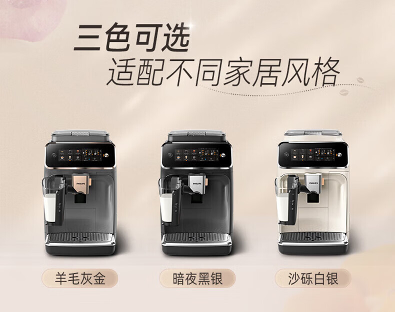飞利浦 全自动咖啡机浓缩冷热萃取研磨一体机 1.8L EP3341/89(白金)/EP3341/82(黑银)EP3341/62(灰金)