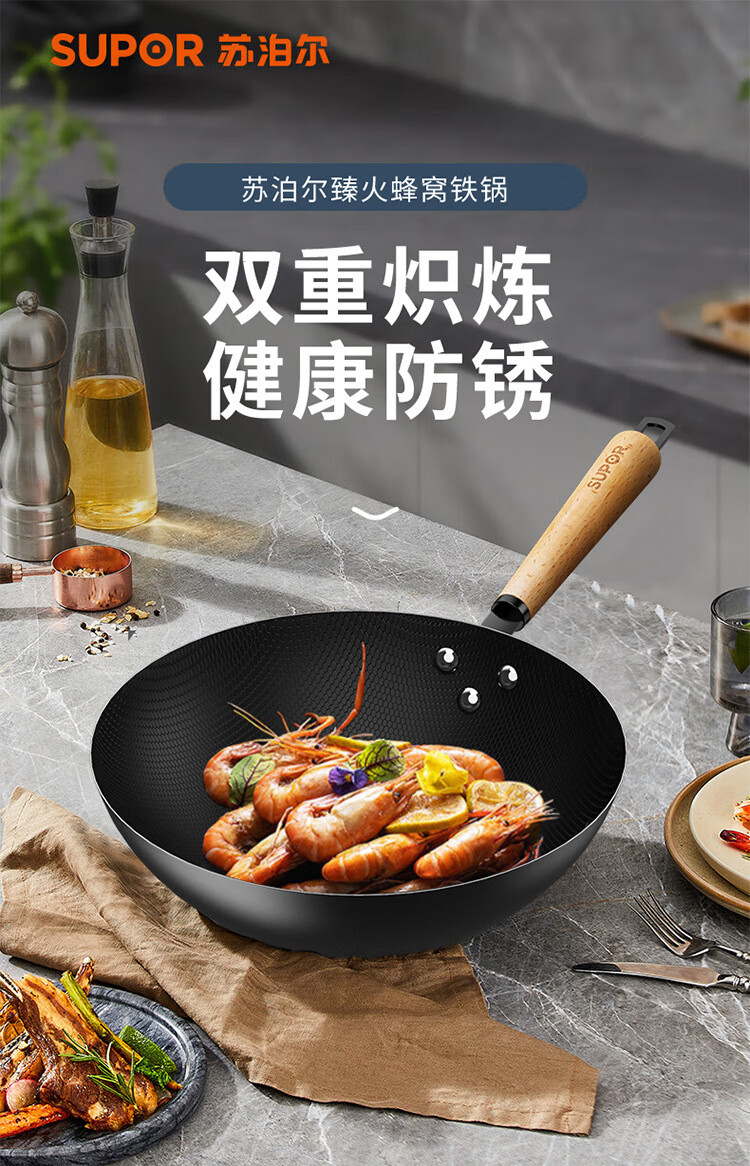 苏泊尔 臻火蜂窝铁锅 32cm VC32RF01-G(带玻璃盖)