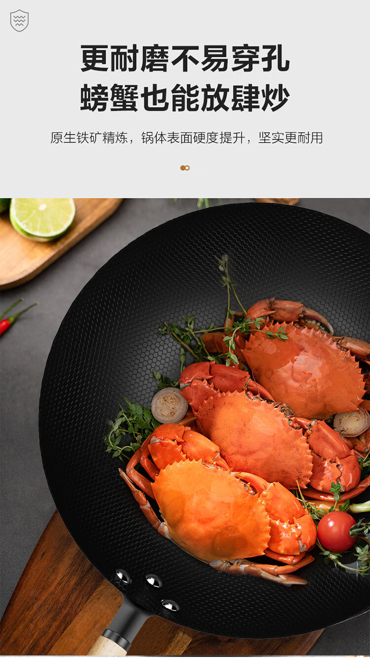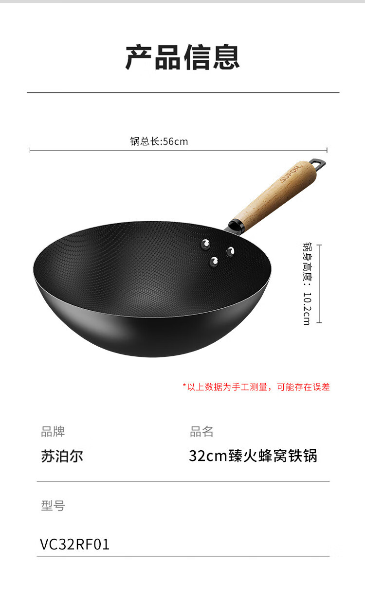 商品名称:苏泊尔 臻火蜂窝铁锅 32cm VC32RF01-G(带玻璃盖)