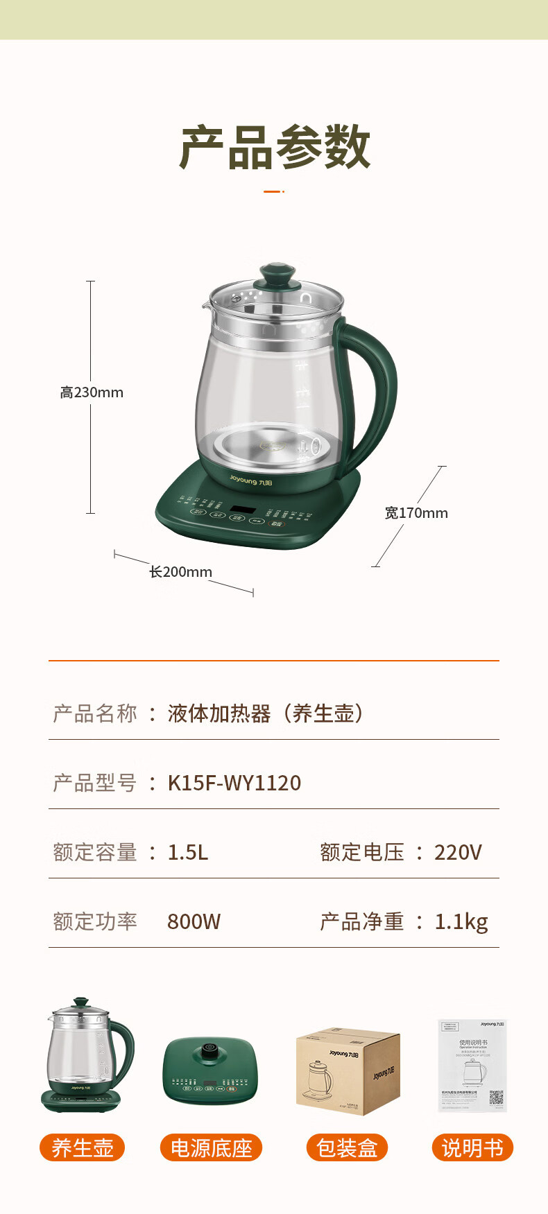 商品名称:九阳 养生壶 1.5L K15F-WY1120