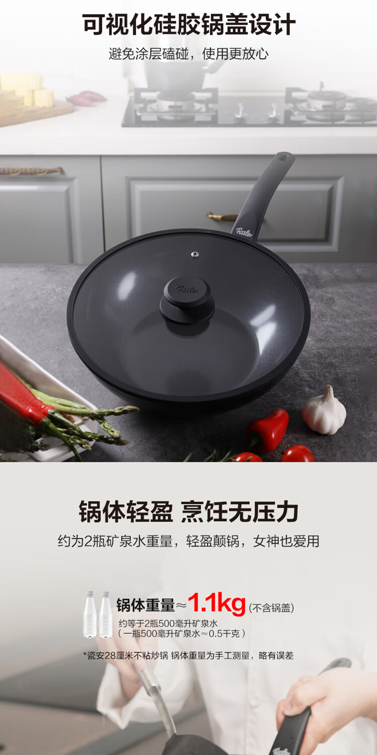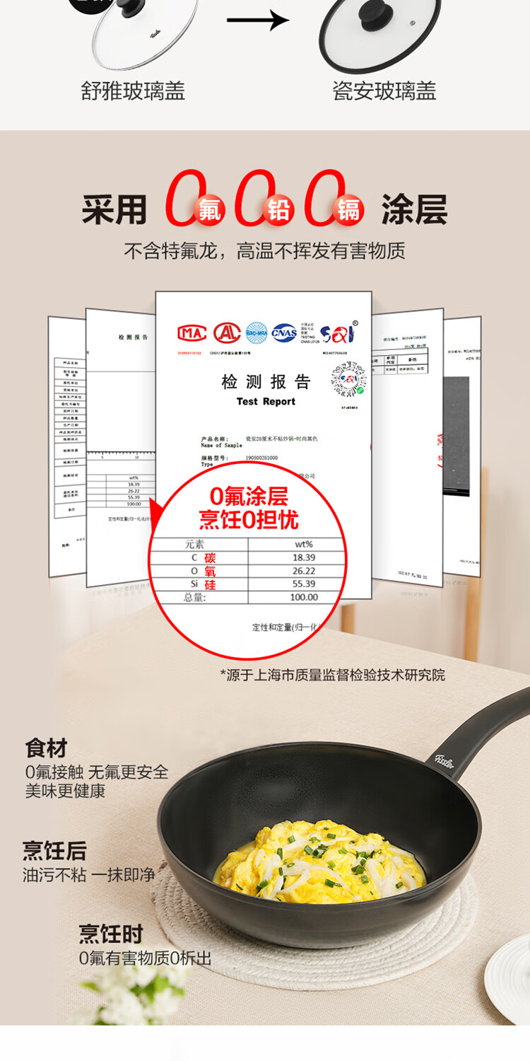商品名称:菲仕乐 瓷安不粘炒锅(含玻璃盖)-黑色星空底 28厘米