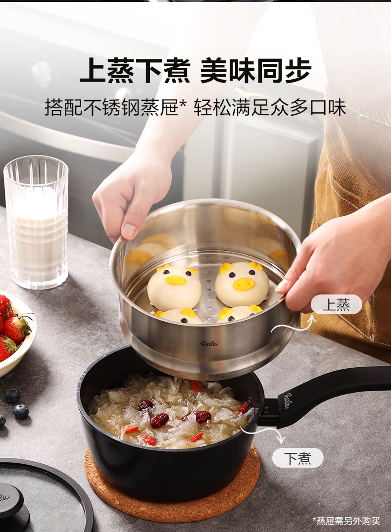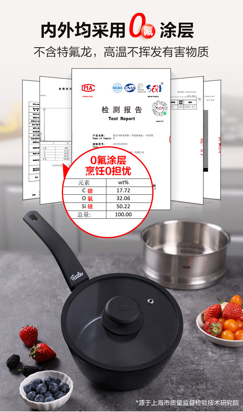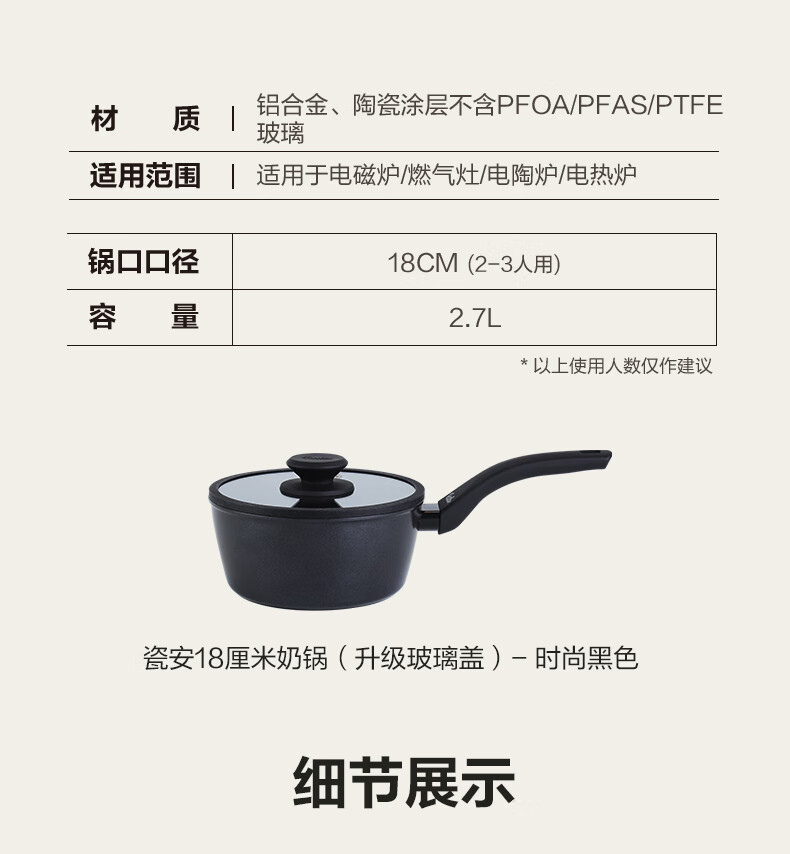 商品名称:菲仕乐 瓷安奶锅(含玻璃盖)-黑色星空底 18厘米