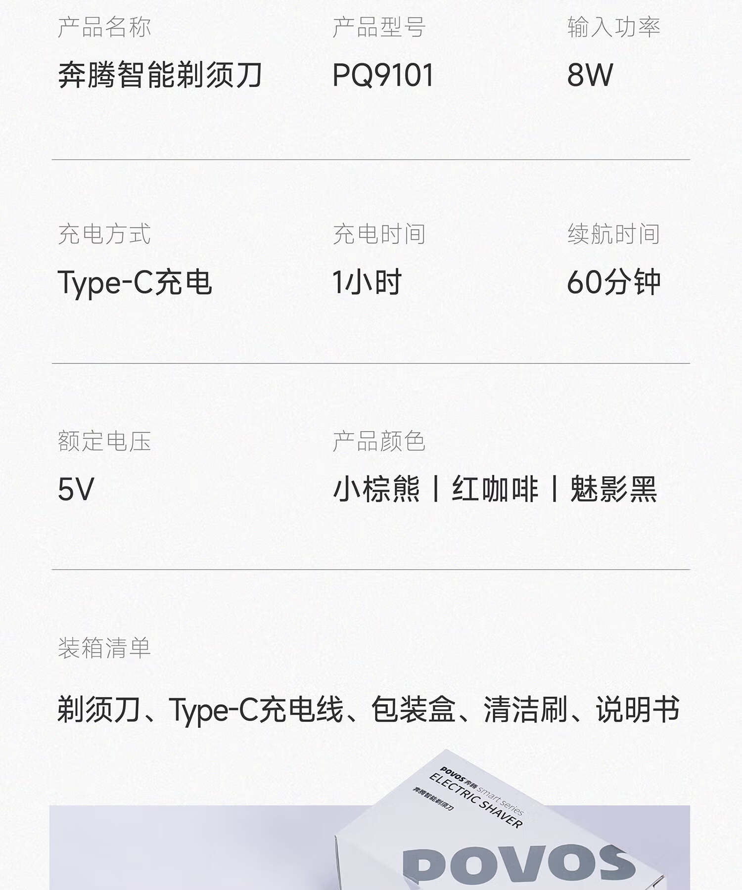 商品名称:奔腾 电动剃须刀 PQ9101