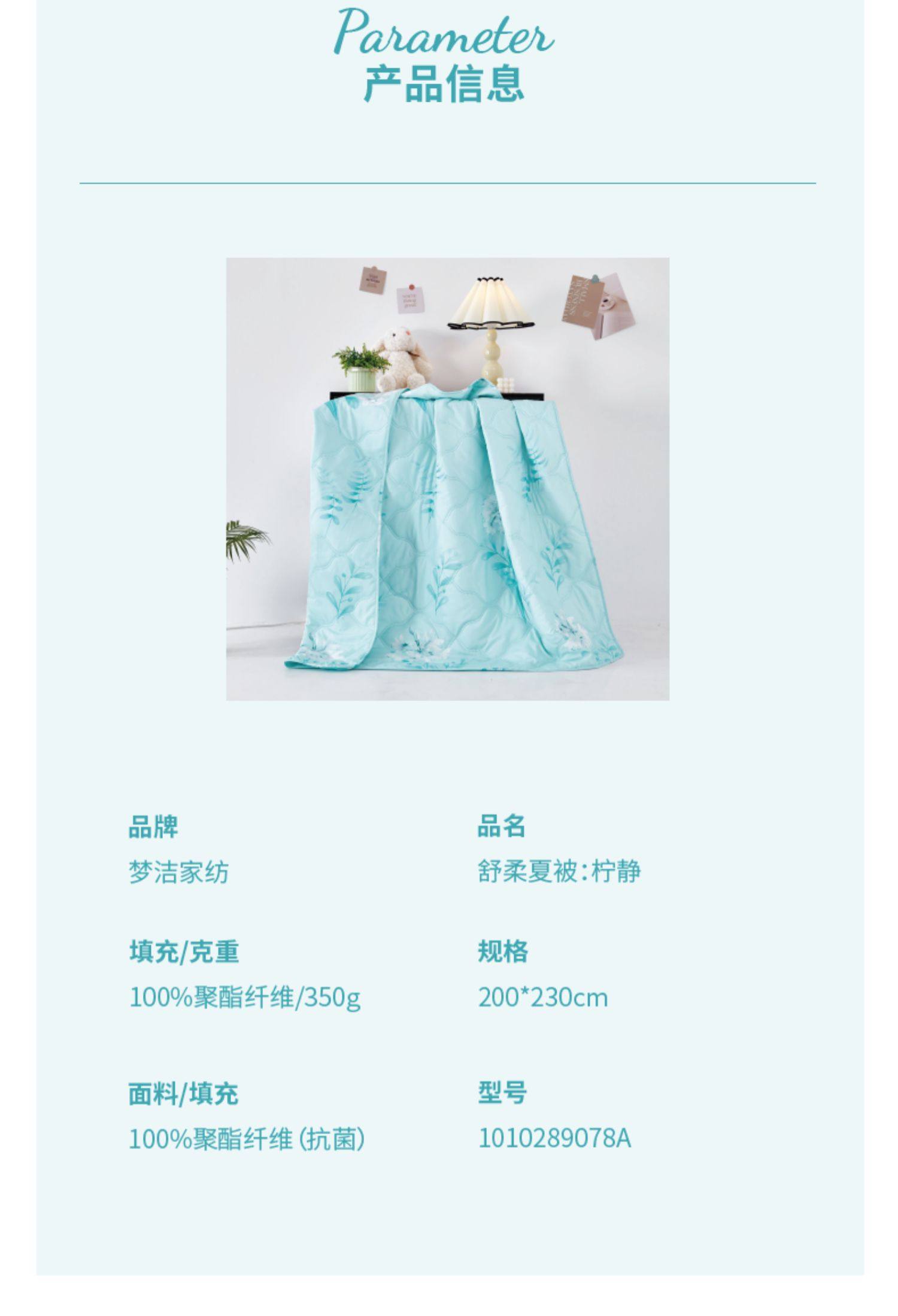 商品名称:梦洁家纺 舒柔夏被:柠静 200*230CM 350g 1010289078A