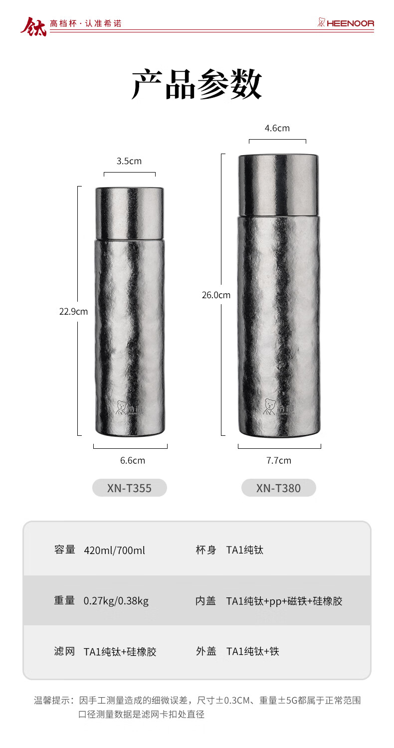 商品名称:希诺 纯钛真空杯 700ml XN-T380
