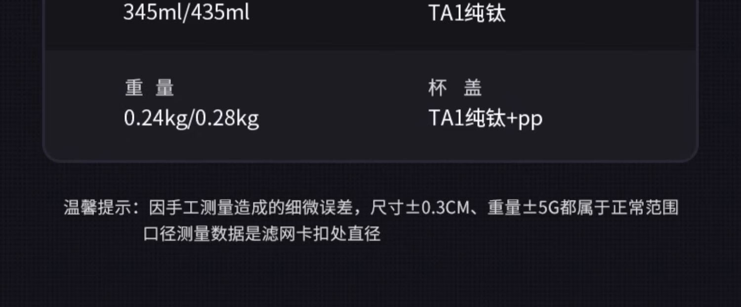 商品名称:希诺 纯钛真空杯 435ml XN-T357
