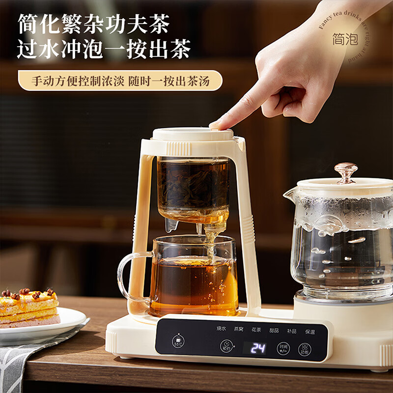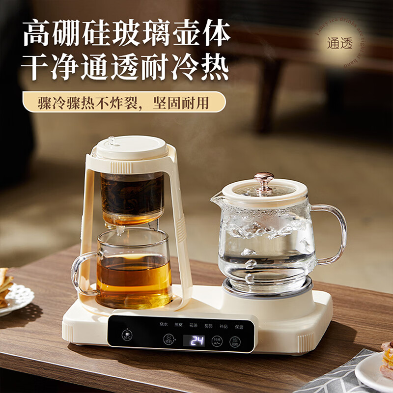 ◁暖饮+炖煮二合一,玩转养生新花样 ◁高硼硅玻璃健康杯体,坚固耐用,干净通透耐冷热 ◁双杯设计,自带茶水分离配置
