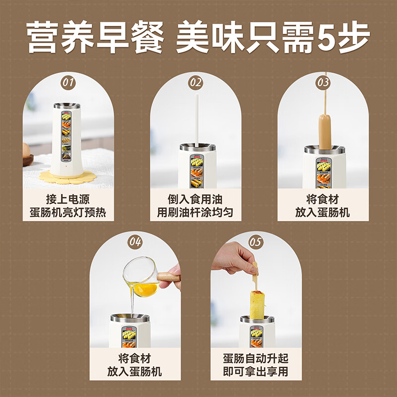 ◁ 简单操作,轻松做出美味早餐 ◁ 360°均匀环绕加热,食材口感软嫩 ◁ 食品级不沾材质内壁,成品易拿出,简单易清洗