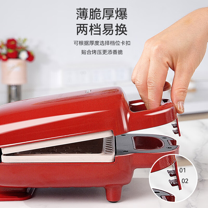 ◁ 铝合金+钛陶瓷涂层不沾盘,安全稳定耐用易清洗 ◁ 升级加宽自动封边,严丝合缝锁馅料 ◁ 两档可调,上下同步加热