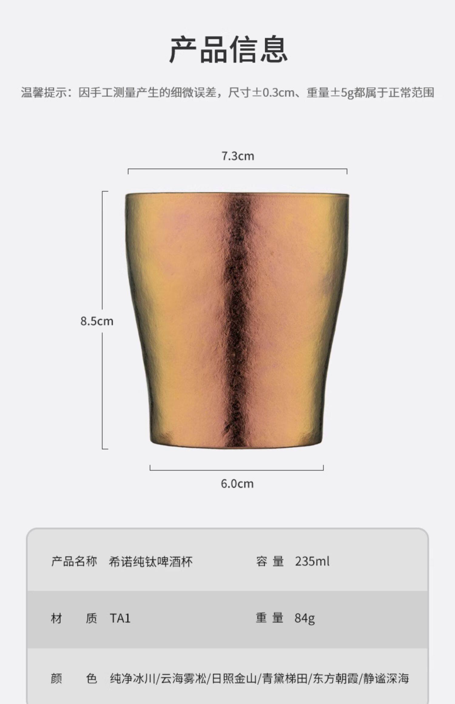 商品名称:希诺 纯钛明雅杯 235ml XN-T207