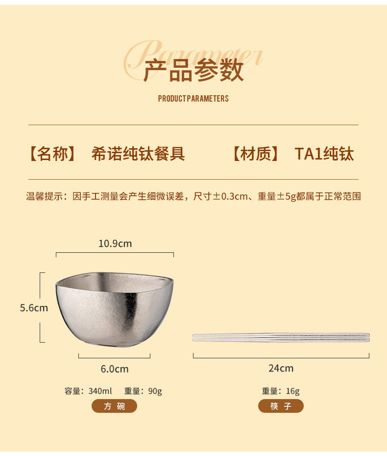 商品名称:希诺 纯钛筷套组 340ml XN-T920