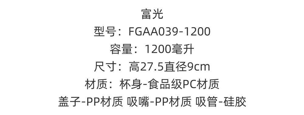 商品名称:富光 森野弹盖大容量水杯(流通款) 1200ml FGAA039-1200