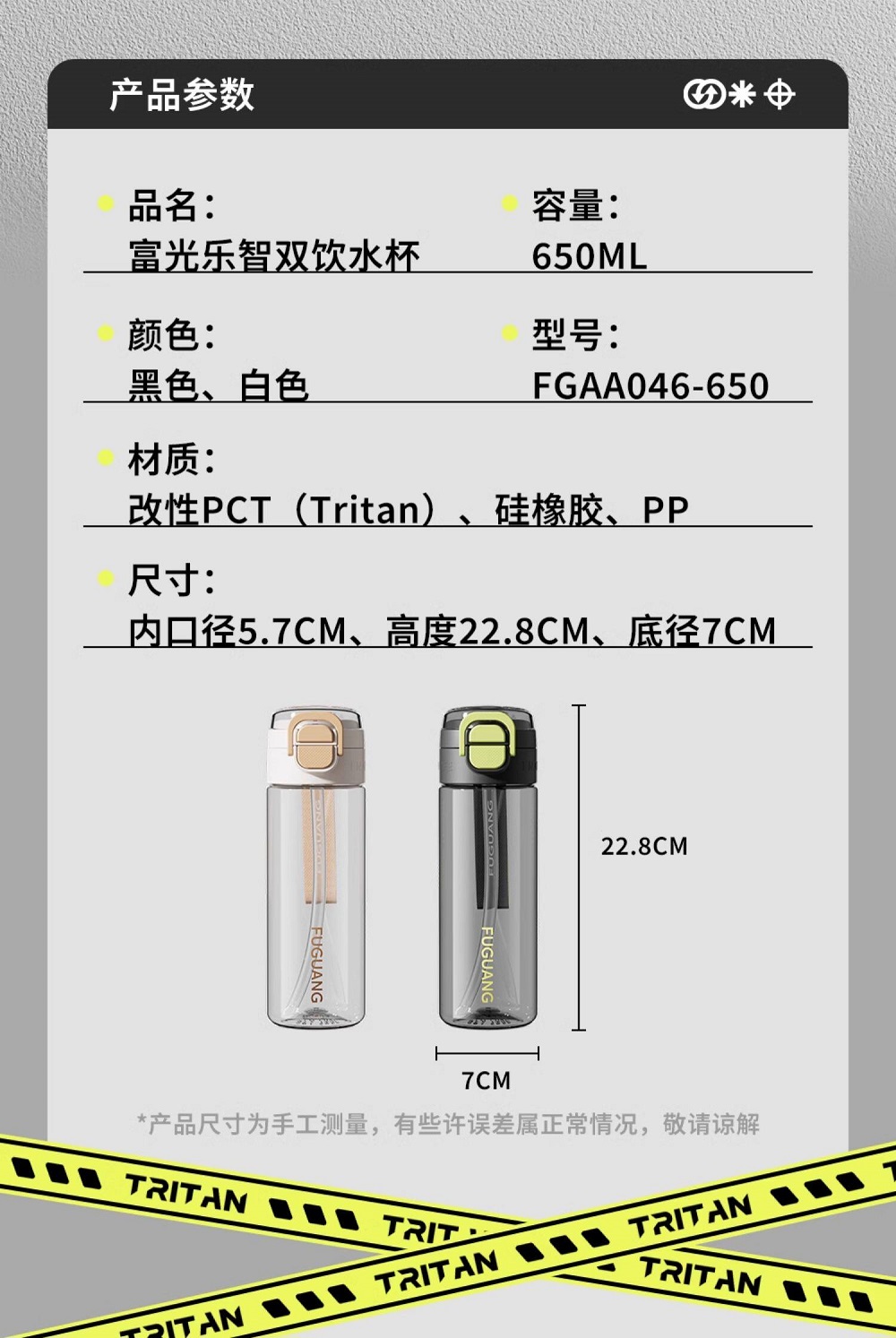 商品名称:富光 乐智双饮水杯(包销款)650ml FGAA046-650