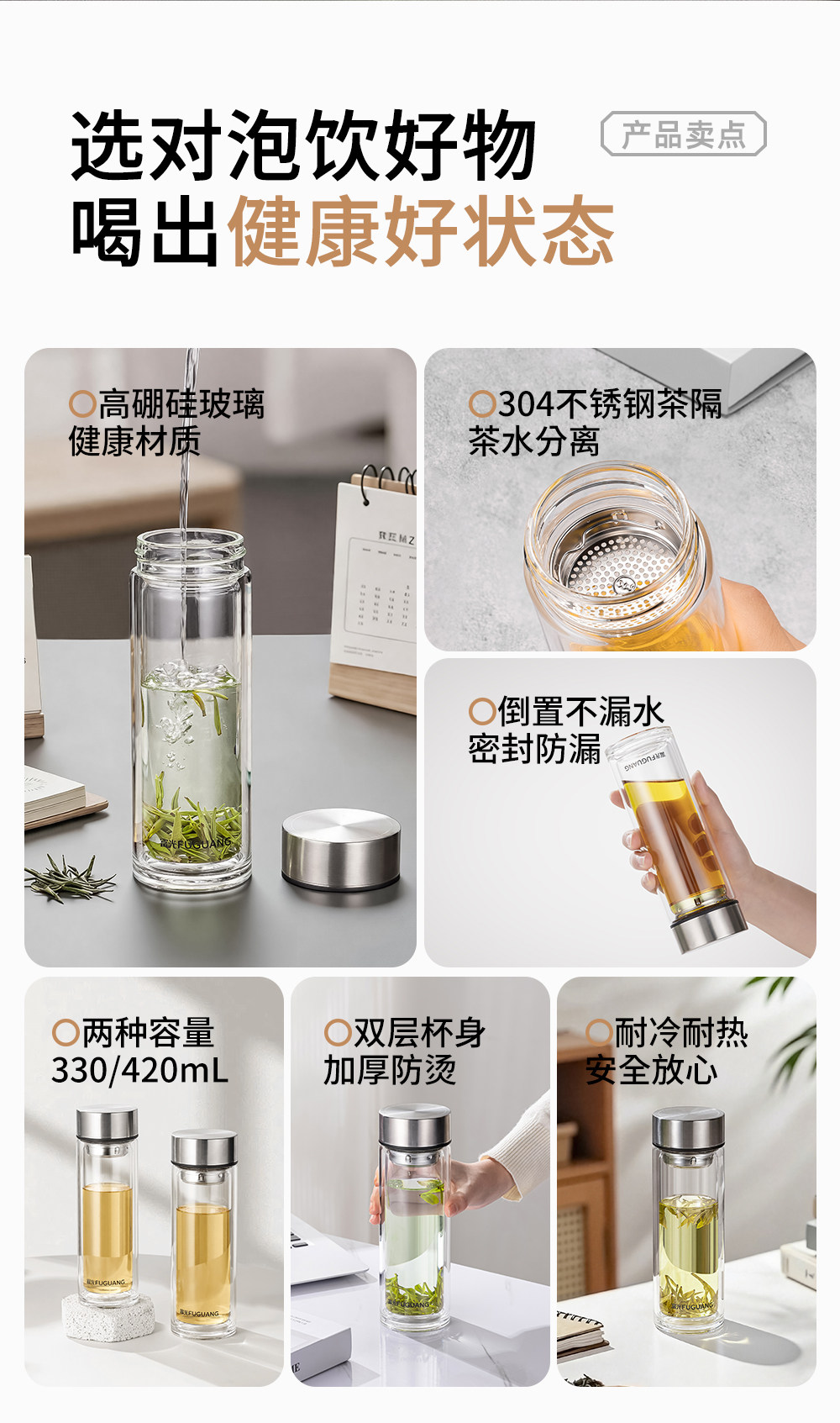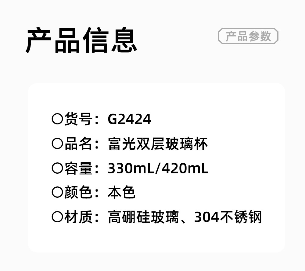 商品名称:富光 晖宇双层玻璃杯(独家包销款) 330ml G2424-SH-330